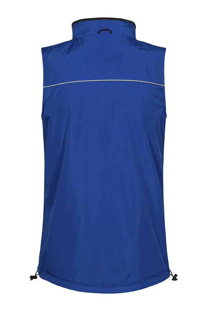 Featuring a stand-up collar, front napoleon pocket, two front/inside zipped side pockets, the reversible vest has a sewn-in key ring in the side pocket, reflective piping and zip pullers. The vest has a tunny drawcord on the hem with a stem, a curved hem, an invisible zipper for decoration and a modern cut.