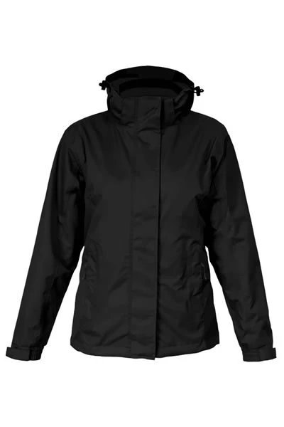 Performance jacket with hidden two-way zip plus Velcro fasteners, removable hood with volume control at front and back. The jacket has a hidden Napoleon pocket with a zip, adjustable sleeve cuffs with velcro closure, tunnel drawstring at hem with internal shanks, two side zip pockets, invisible em-bellishment zip, zip and closure on replaceable inner jacket. It is water-proof, windproof and breathable. The jacket has a modern cut.