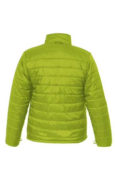 The quilted jacket features a stand-up collar, a full-length zip, two side zip pockets, a jacket closure and a neutral size label. The jacket stands out with its sporty cut. It is made of nylon (outer/inner material) and polyester (wadding).