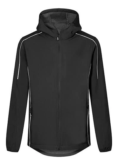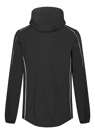 Light jacket. Features of this jacket: hood, waterproof zips, chin guard, longer back with curved hem, two side zip pockets, sewn-in key ring in side pocket, reflective piping and zip pullers, panel seams, neutral size label. The jacket is breathable and waterproof, and has a modern cut.