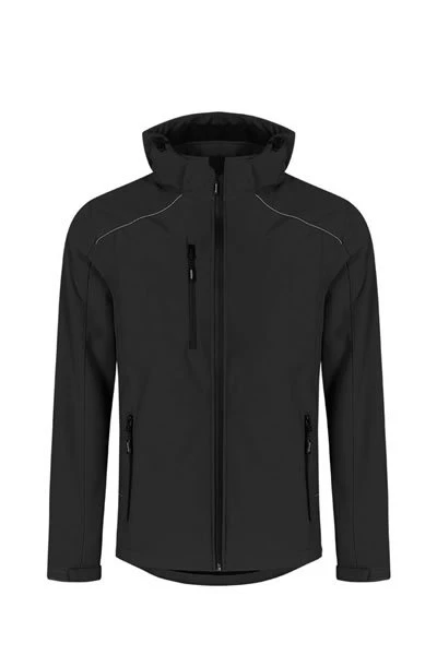 Functional softshell jacket with removable hood and volume regulator has waterproof zips, chin guard, Napoleon pocket, also sleeve pocket and adjustable sleeve cuffs with Velcro. The drawstring at the hem is enriched with stems inside. The jacket has two zipped side pockets, a sewn-in key ring in the side pocket, reflective piping and zip pullers. Yippee waterproof, windproof and breathable. It is made of white-elastic bonded polyester fleece with elastane for greater comfort. The jacket stands out with its modern cut.
