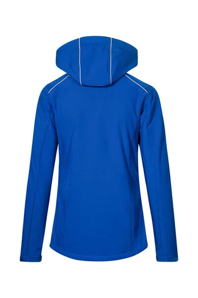 Functional softshell jacket with removable hood and volume regulator has waterproof zips, chin guard, Napoleon pocket, also sleeve pocket and adjustable sleeve cuffs with Velcro. The drawstring at the hem is enriched with stems inside. The jacket has two zipped side pockets, a sewn-in key ring in the side pocket, reflective piping and zip pullers. Yippee waterproof, windproof and breathable. It is made of white-elastic bonded polyester fleece with elastane for greater comfort. The jacket stands out with its modern cut.