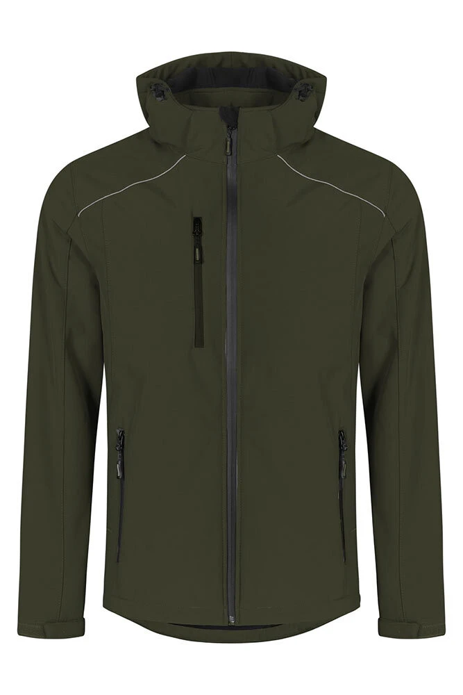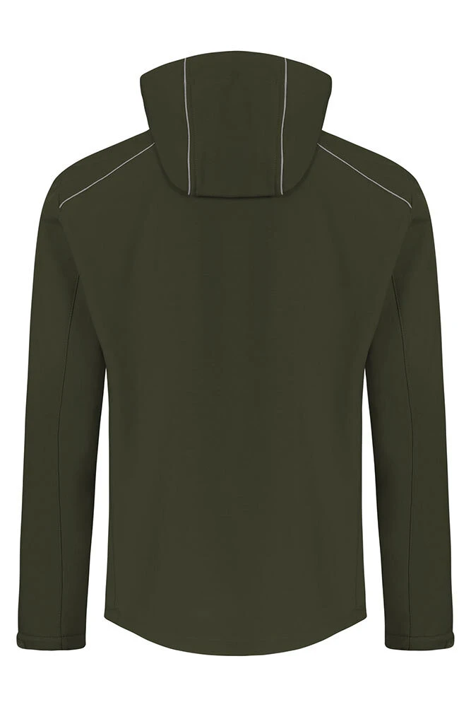 Functional softshell jacket with removable hood and volume regulator has waterproof zips, chin guard, Napoleon pocket, also sleeve pocket and adjustable sleeve cuffs with Velcro. The drawstring at the hem is enriched with stems inside. The jacket has two zipped side pockets, a sewn-in key ring in the side pocket, reflective piping and zip pullers. Yippee waterproof, windproof and breathable. It is made of white-elastic bonded polyester fleece with elastane for greater comfort. The jacket stands out with its modern cut.