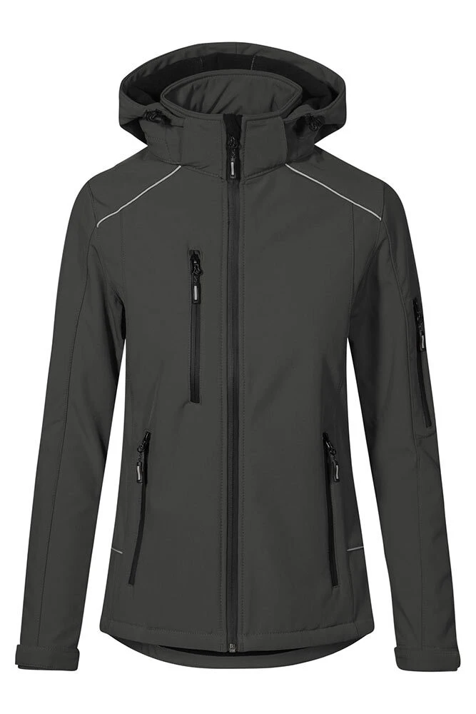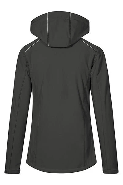 Functional softshell jacket with removable hood and volume regulator has waterproof zips, chin guard, Napoleon pocket, also sleeve pocket and adjustable sleeve cuffs with Velcro. The drawstring at the hem is enriched with stems inside. The jacket has two zipped side pockets, a sewn-in key ring in the side pocket, reflective piping and zip pullers. Yippee waterproof, windproof and breathable. It is made of white-elastic bonded polyester fleece with elastane for greater comfort. The jacket stands out with its modern cut.