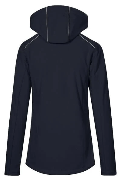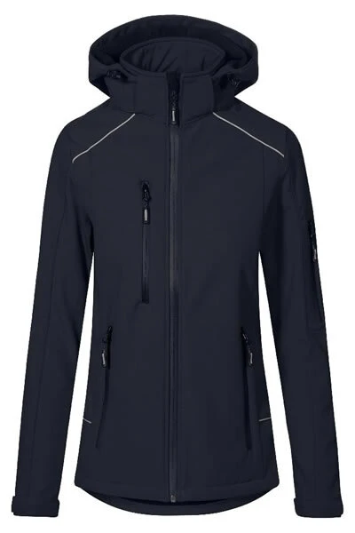 Functional softshell jacket with removable hood and volume regulator has waterproof zips, chin guard, Napoleon pocket, also sleeve pocket and adjustable sleeve cuffs with Velcro. The drawstring at the hem is enriched with stems inside. The jacket has two zipped side pockets, a sewn-in key ring in the side pocket, reflective piping and zip pullers. Yippee waterproof, windproof and breathable. It is made of white-elastic bonded polyester fleece with elastane for greater comfort. The jacket stands out with its modern cut.