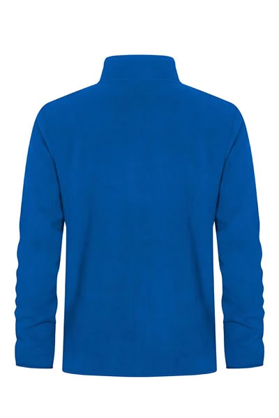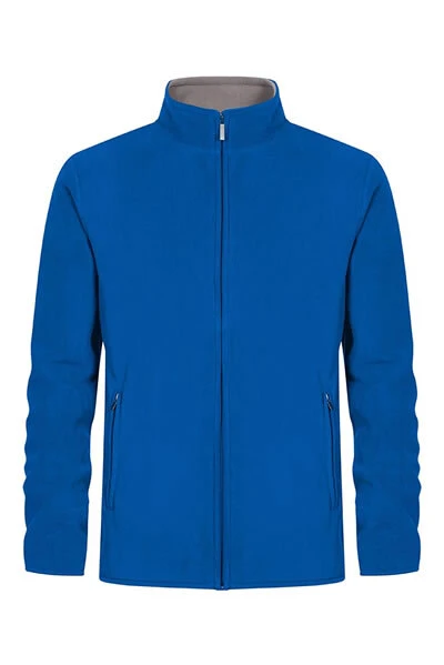The double-breasted fleece jacket has a full-length concealed zip, narrow cuffs with elastic hem and two zipped side pockets. The inside of the jacket is in a contrasting color and is made of polyester with an anti-pilling treatment on both sides. The fleece jacket has a slim cut.
