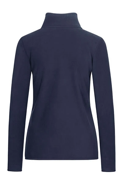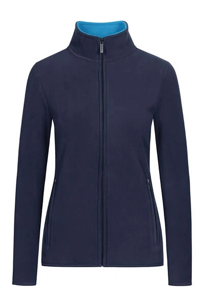 The double-breasted fleece jacket features a full-length concealed zip, narrow cuffs with elastic hem and two side zip pockets. The inside of the jacket is in a contrasting color and is made of polyester with an anti-pilling treatment on both sides. The fleece jacket has a narrow cut.