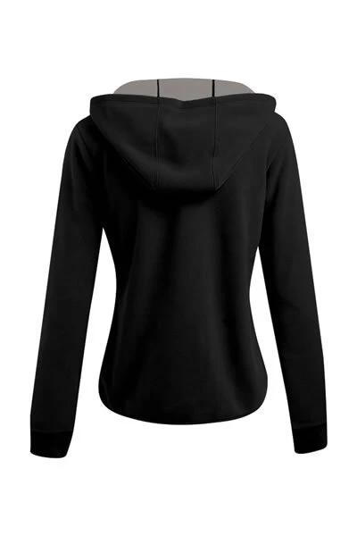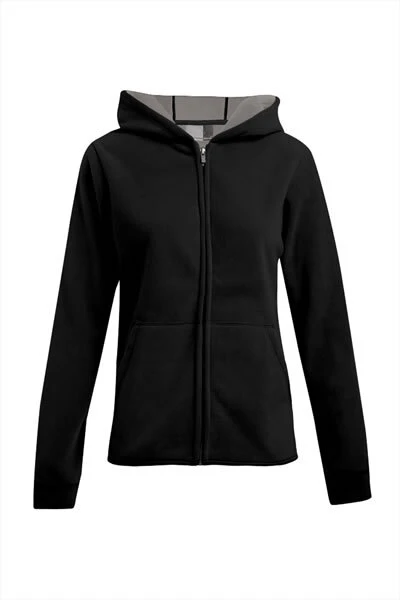 The double fleece jacket has a hood with a stand-up collar and a full-length zip, sleeve cuffs with elastane and tactile pockets with decorative stitching. The inside of the jacket is in a contrasting color and is made of polyester with an anti-pilling treatment on both sides. The fleece jacket has a modern cut.