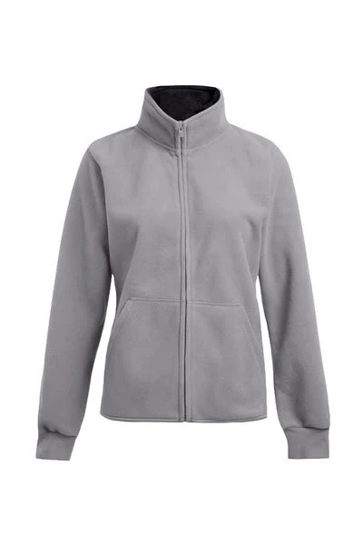 The double fleece jacket with a stand-up collar and a full-length zip is matched with elastane sleeve cuffs and tactile pockets with decorative stitching. The inside of the jacket is in a contrasting color and it is made of polyester with anti-pilling treatment on both sides. The fleece jacket has a modern cut.