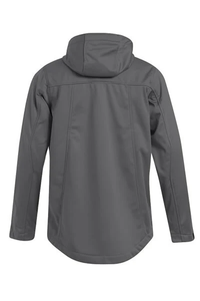 The softshell jacket with a classic fit has a waterproof zip, chin guard, volume-regulating hood with elastic tunnel drawcord and stops on both sides. The jacket has adjustable sleeve cuffs