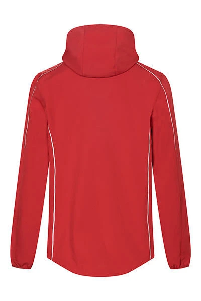 Light jacket. Features of this jacket: hood, waterproof zips, chin guard, longer back with curved hem, two side zip pockets, sewn-in key ring in side pocket, reflective piping and zip pullers, panel seams, neutral size label. The jacket is breathable and waterproof, and has a modern cut.