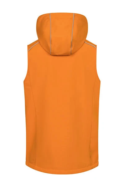 Functional waistcoat with detachable hood with volume regulator features water resistant zips, chin guard, napoleon pocket, tunnel drawstring hem with internal drawstring stops, longer back with curved hem, two side zip pockets, sewn in key ring in side pocket, reflective piping and zip pullers, paneled seams, neutral size label. The material of the vest is breathable, waterproof (8,000 mm). The vest has a modern cut.
