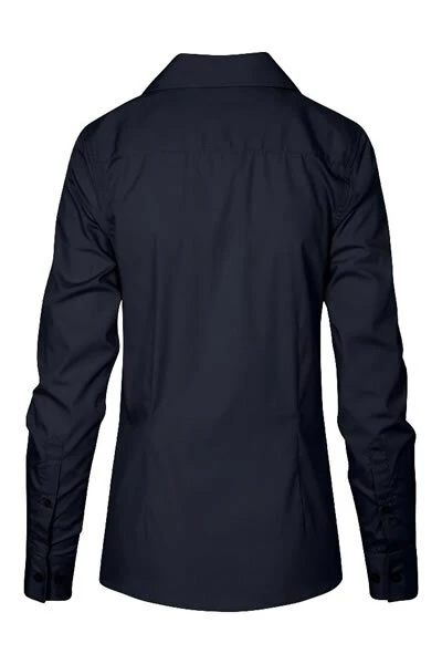 A classic long-sleeve poplin blend shirt with a reinforced kent collar and button panel with tonal buttons, as well as a separate chest pocket and spare buttons. Specific features of this shirt: 2-button adjustable cuff (barrel cuff), long sleeve placket with button, double back saddle, turned hem, made of combed cotton with polyester. The shirt is modern shear.
