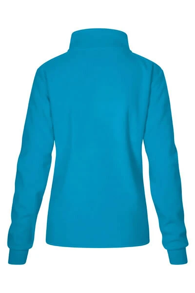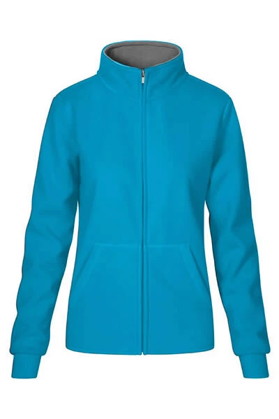 The double fleece jacket with a stand-up collar and a full-length zip is matched with elastane sleeve cuffs and tactile pockets with decorative stitching. The inside of the jacket is in a contrasting color and it is made of polyester with anti-pilling treatment on both sides. The fleece jacket has a modern cut.