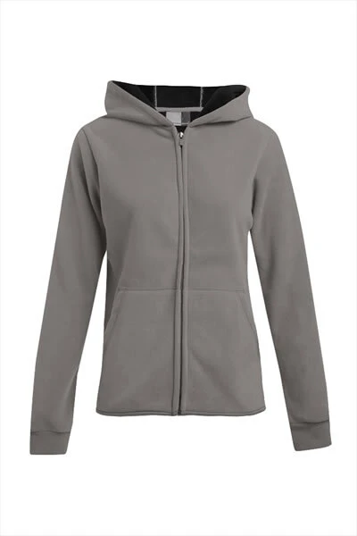 The double fleece jacket has a hood with a stand-up collar and a full-length zip, sleeve cuffs with elastane and tactile pockets with decorative stitching. The inside of the jacket is in a contrasting color and is made of polyester with an anti-pilling treatment on both sides. The fleece jacket has a modern cut.