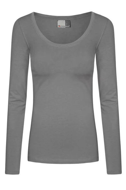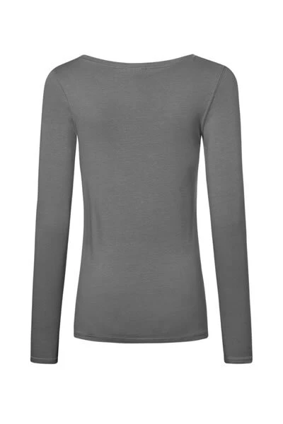 Modern long-sleeved single-jersey shirt with elastane content in ribbed cuffs has a wide neckline made of combed cotton with elastane content for greater freedom of movement. The shirt has a close fit and is made with side seams. Certified according to OEKO-TEX®