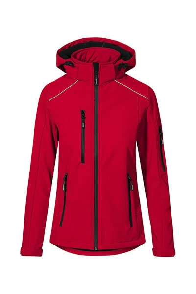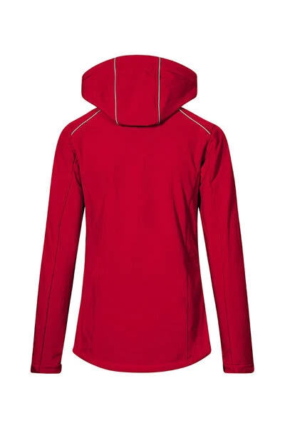 Functional softshell jacket with removable hood and volume regulator has waterproof zips, chin guard, Napoleon pocket, also sleeve pocket and adjustable sleeve cuffs with Velcro. The drawstring at the hem is enriched with stems inside. The jacket has two zipped side pockets, a sewn-in key ring in the side pocket, reflective piping and zip pullers. Yippee waterproof, windproof and breathable. It is made of white-elastic bonded polyester fleece with elastane for greater comfort. The jacket stands out with its modern cut.