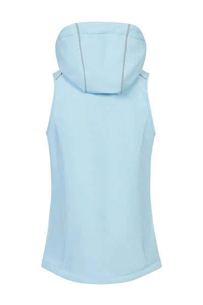 Functional waistcoat with detachable hood and volume regulator features waterproof zips, chin guard, napoleon pocket, tunnel drawstring at hem with internal drawstring stops, two zipped side pockets and sewn-in key ring in side pocket. The vest has reflective trim and zipper pullers. The material of the vest is breathable and waterproof (8,000 mm). The vest has a modern cut.