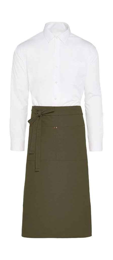 This smart canvas bistro apron is available in several fashionable colours. The antique brass rivets on each side of the pockets will provide a discrete but Fashion Look. With a practical pocket and and ideal length for great freedom of movement, it's perfect for professional teams or in the Home. Washable at 60°, it's also colourfast and easy care, for a long-lasting fresh look.