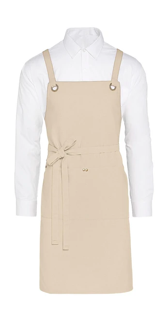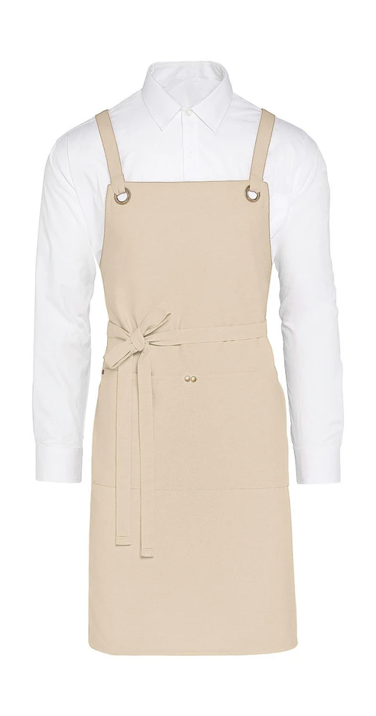 With its 2 antique brass eyelets and rivets, this Canvas bib apron with cross-over ties at the back is for the masters! Available in fashionable colours, wth a practical front pocket and ideal length for great freedom of movement, it's perfect for professional teams and people "Fashion" oriented. Washable at 60°, it's also colourfast and easy care, for a long-lasting fresh look.