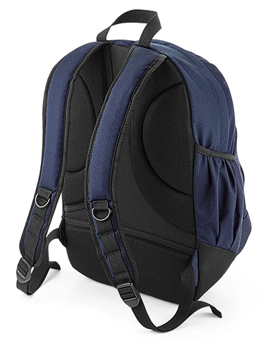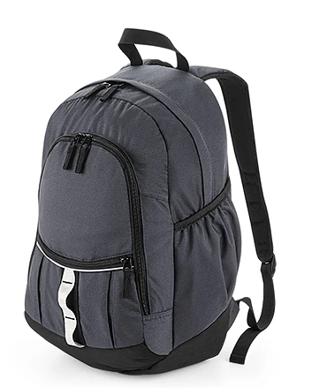 Padded adjustable shoulder straps, ergonomic padded back panel, media pocket & headphone port, water bottle holder, front pocket organiser section, zippered small front pocket, reflective strip, elasticated side pockets, grab handle