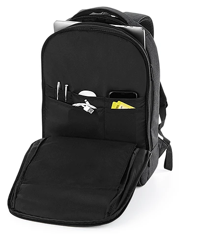TearAway label for ease of rebranding, padded laptop compartment, compatible up to 15.6", padded internal iPad/ Tablet compartment, discrete zippered back panel pocket, front pocket organiser section, power bank pocket, integrated USB charging port, zippered internal valuables pocket, can be carried by hand or backpack style, zippered front pocket, ergonomic padded back panel, padded adjustable shoulder straps, Dimensions: 30 x 42 x 14 cm; Capacity: 16.5 litres