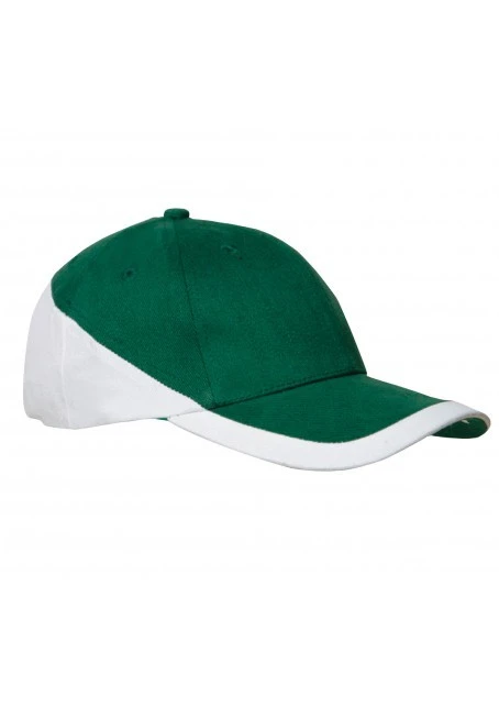 100 % Brushed Heavy Cotton Twill. 6 panel cap with eyelets. Contrast colour. Size adjuster with metal buckle.