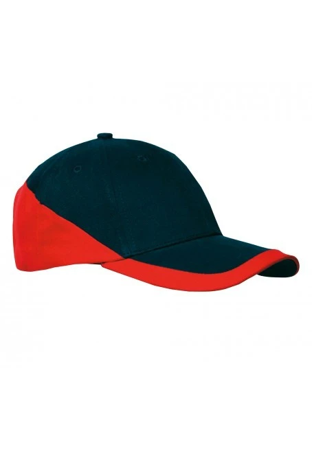 100 % Brushed Heavy Cotton Twill. 6 panel cap with eyelets. Contrast colour. Size adjuster with metal buckle.
