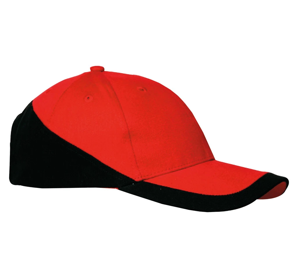 100 % Brushed Heavy Cotton Twill. 6 panel cap with eyelets. Contrast colour. Size adjuster with metal buckle.