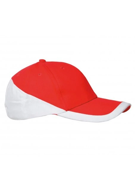 100 % Brushed Heavy Cotton Twill. 6 panel cap with eyelets. Contrast colour. Size adjuster with metal buckle.
