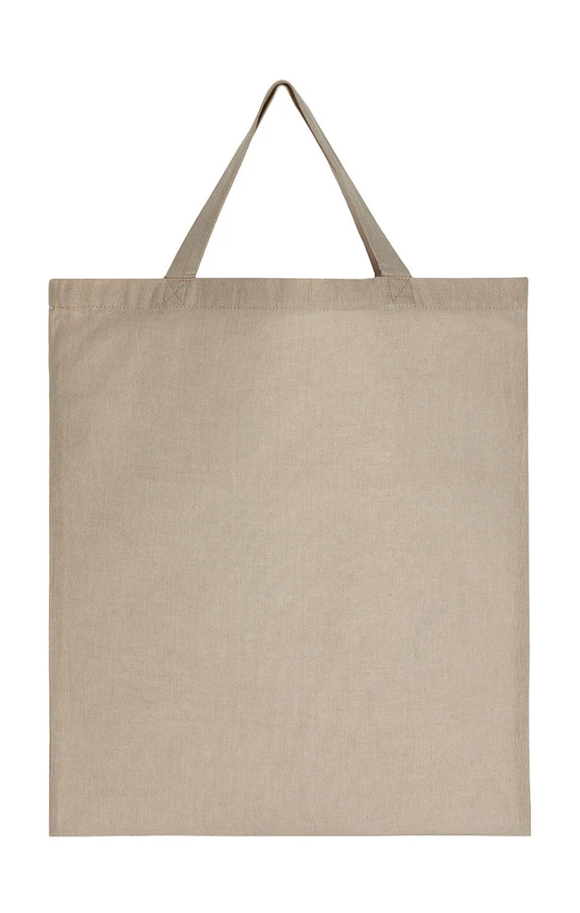 Looking for a sustainable alternative to organic cotton, and in great colours too? This RECYCLED fabric (GRS certified) short handled tote bag is the ideal choice. A classic style, it's available in a range of exciting Heather shades that will add a Trendy edge to your conscious offer.