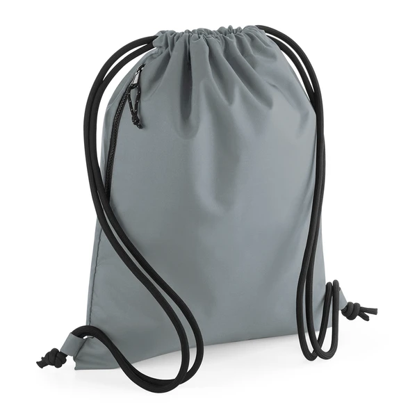 Material: 100% Recycled 300D Polyester; Dimensions: 40 x 48 cm;Capacity: 15 litres; Made from 4 recycled plastic bottles, recycled Polyester made from 100% rPET, equivalent to 4 post-consumer bottles, PVC Free, hidden stash pocket, self fabric cord loops for ease of decoration, cord zip pullers with reflective detailing, tearAway label for ease of rebranding, chunky draw cords