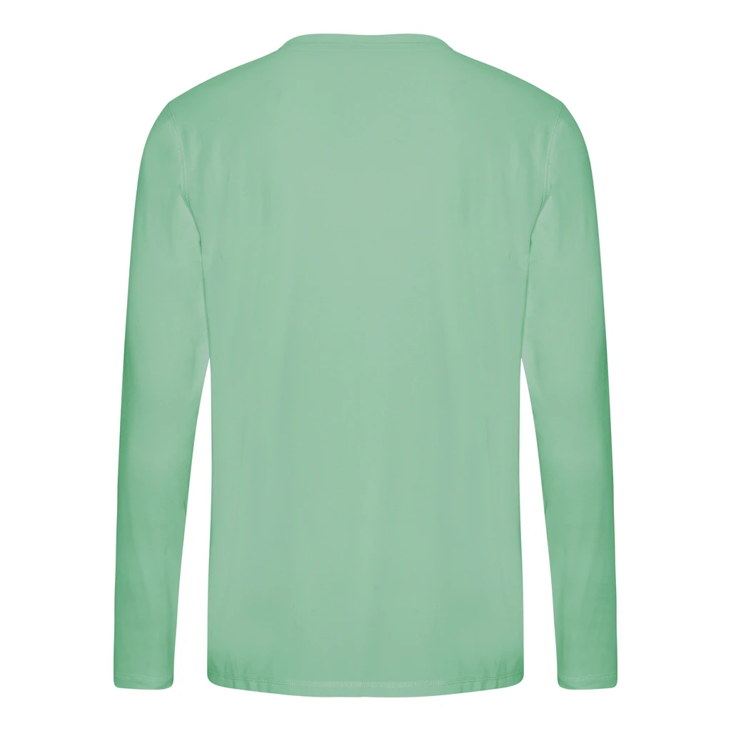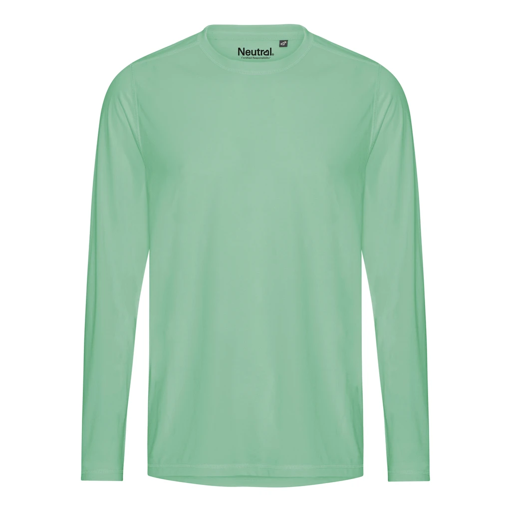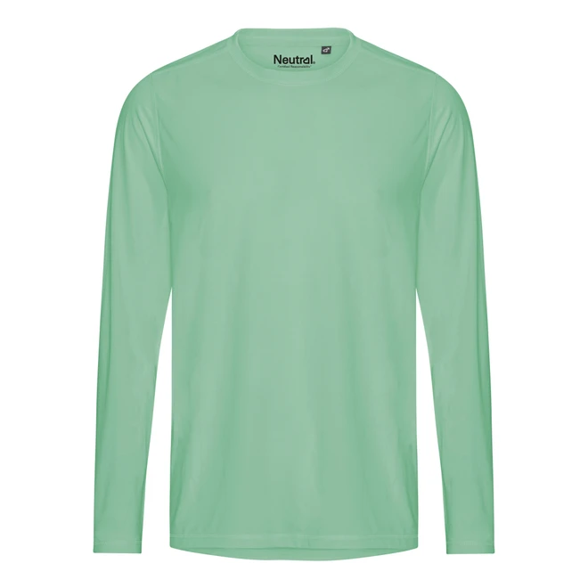 Regular fitted single jersey long sleeve T-shirt with Quick Wick function. Crew neck with double-layered elastane rib and inside neck tape. Features flatlock seams at shoulders, sleeves and bottom. 155gsm lightweight quality, made from 100% recycled polyester.