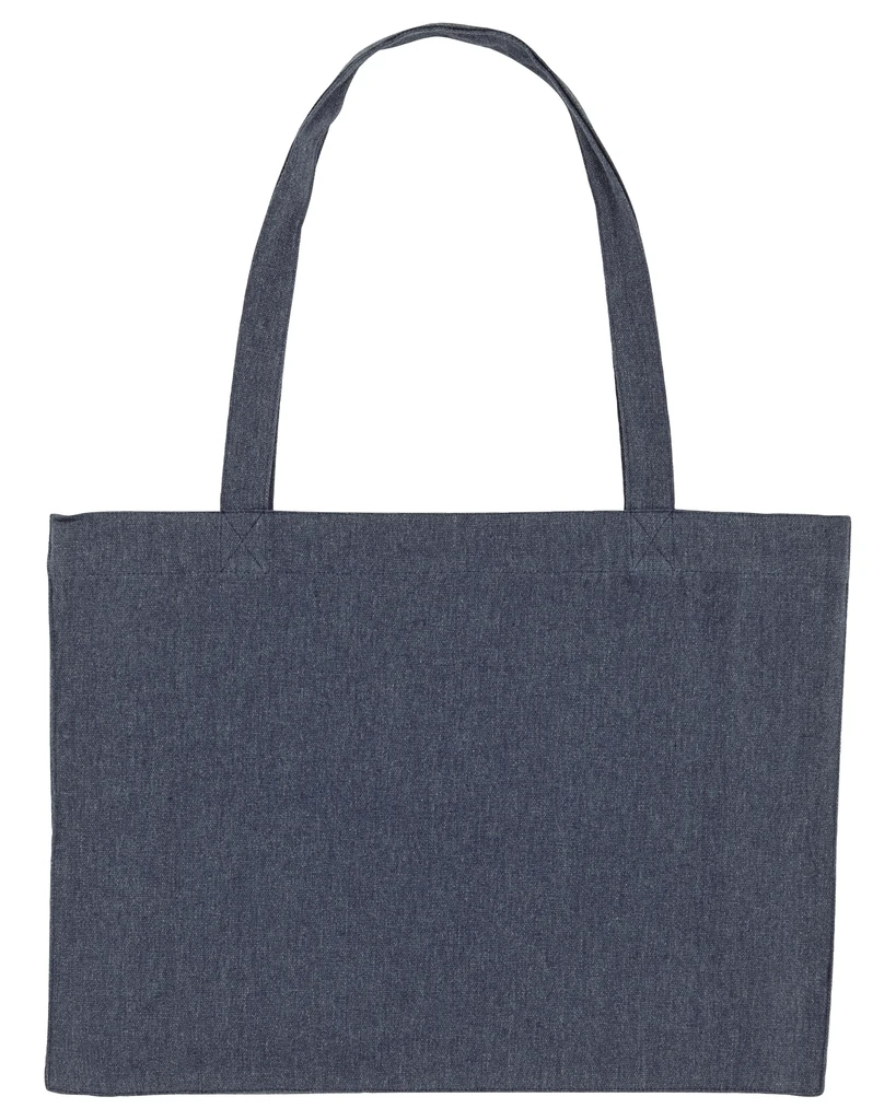 Weight: 300 gsm; Material: CANVAS - 80% RECYCLED COTTON, 20% RECYCLED POLYESTER; Top edge double folded for strength and clean finish, Side soufflet, Long handles with reinforced cross stitch, Single edge stitch on all seams in matching body colour thread