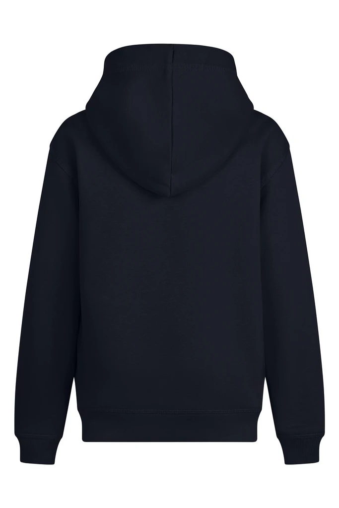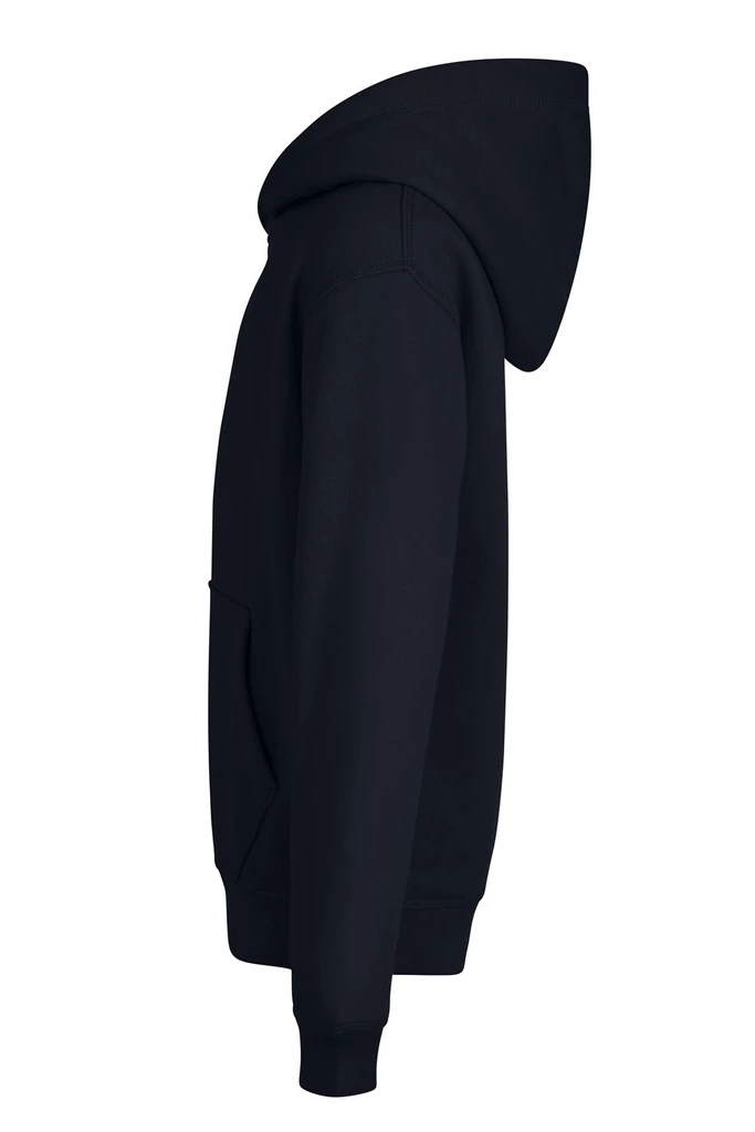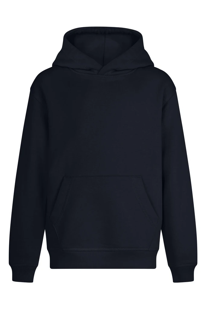 KIDS´ Hooded Sweatshirt. Brushed Fleece. 85% Organic RingSpun Cotton - 15% Recycled Polyester. 300 g/m². Brushed fleece, soft, comfortable and warm 2 panel double fabric hood Kangaroo pocket with fine binding finish and reinforced seams Non-deformable cuffs and waistband in ribbed knit fabric 1x1 Reinforced herringbone inner neck tape No brand label in neckline Unisex sizes: REEF Women´s sizes: REEF WOMAN