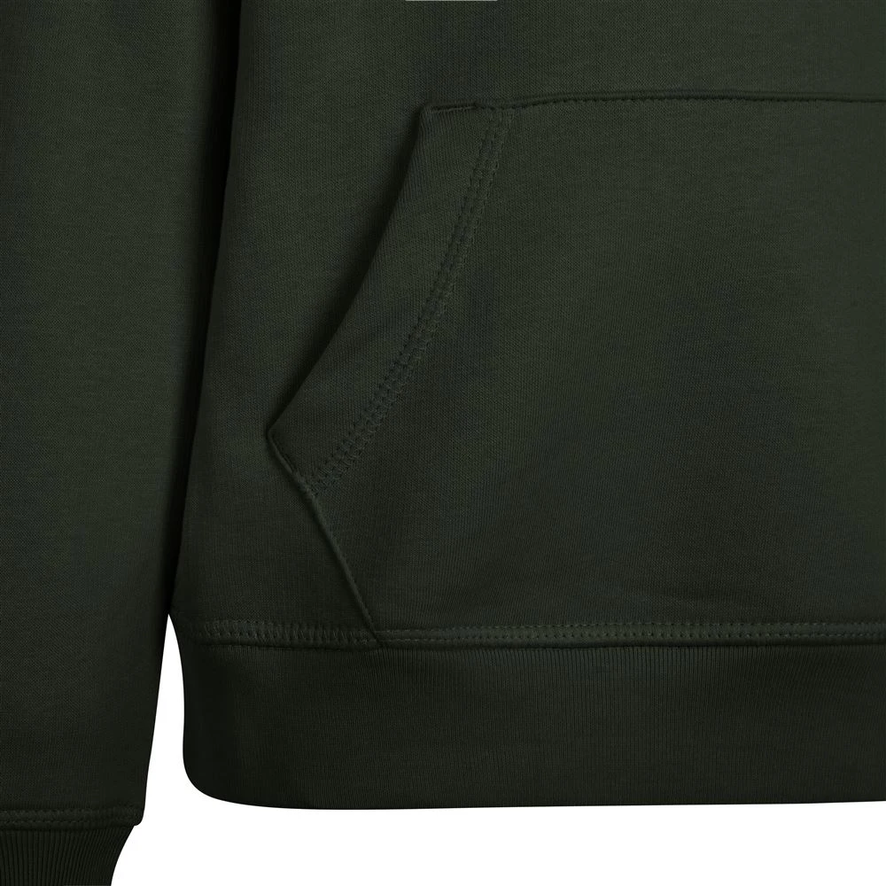 KIDS´ Hooded Sweatshirt. Brushed Fleece. 85% Organic RingSpun Cotton - 15% Recycled Polyester. 300 g/m². Brushed fleece, soft, comfortable and warm 2 panel double fabric hood Kangaroo pocket with fine binding finish and reinforced seams Non-deformable cuffs and waistband in ribbed knit fabric 1x1 Reinforced herringbone inner neck tape No brand label in neckline Unisex sizes: REEF Women´s sizes: REEF WOMAN