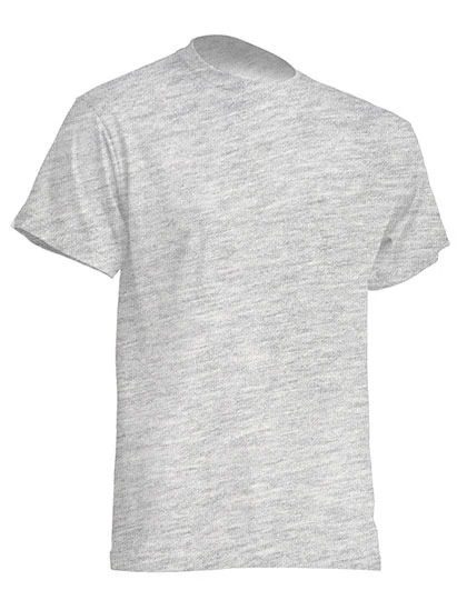 Adult short sleeve T-shirt. Tubular fabric. Lycra rib neck. Double stitch on collar, sleeves and bottom. Shoulder to shoulder tape. XS - 3XL :: BK, NY, RB, WH, RD, GM, SY Grey Melange: 85% cotton / 15% polyester. Ash Melange: 98% cotton / 2% polyester.