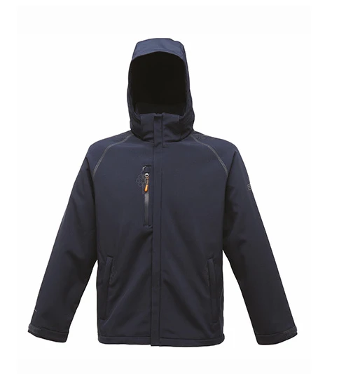 Warm-backed Softshell fabric, durable water repellent finish, mesh lined body, 2 zipped lower pockets and waterproof chest pocket, detachable hood with adjuster, adjustable cuffs, adjustable shockcord hem, concealed zip entrance in lining for embroidery access