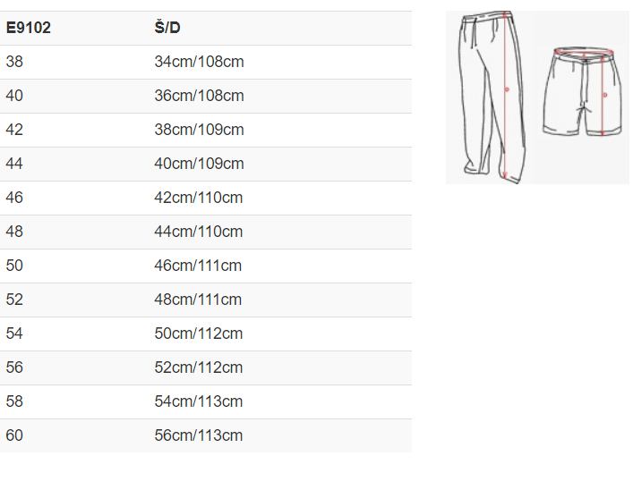 | Velikost extra | 38, 40, 42, 44, 48, 50, 52, 54, 56, 58, 60 |