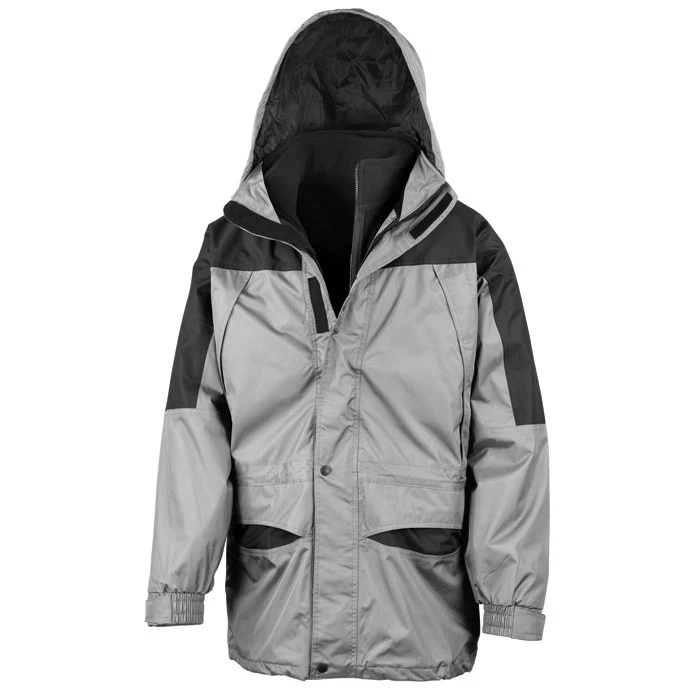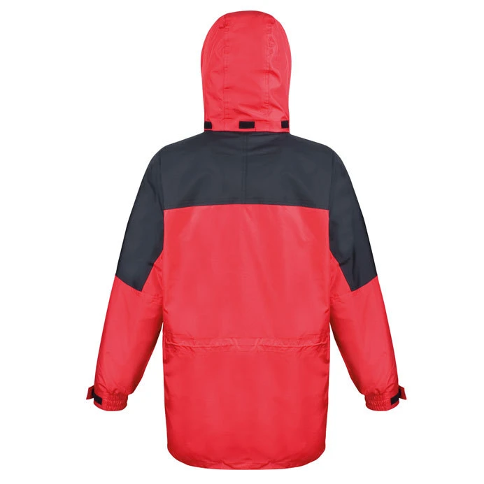 Outer Jacket: outer fabric: polyester Pongee with PVC-coating • lining: 190T nylon Taffeta® • polyester padding: 140 gsm • windproof • watertight • taped seams • collar with concealed hood • concealed 2-way zip with storm flap • hook-and-loop fastener and press studs • elastic cuffs with hook-and-loop fastener • several concealed pockets with zipper • various inside pockets • cable loops • adjustable waist and hem with elasticated drawcord and stoppers • access for decoration on back. Zip-out inner jacket: 280 gsm anti pilling microfleece • side pockets with zip • adjustable hem with elasticated drawcord and stoppers.