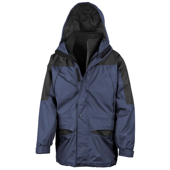 Outer Jacket: outer fabric: polyester Pongee with PVC-coating • lining: 190T nylon Taffeta® • polyester padding: 140 gsm • windproof • watertight • taped seams • collar with concealed hood • concealed 2-way zip with storm flap • hook-and-loop fastener and press studs • elastic cuffs with hook-and-loop fastener • several concealed pockets with zipper • various inside pockets • cable loops • adjustable waist and hem with elasticated drawcord and stoppers • access for decoration on back. Zip-out inner jacket: 280 gsm anti pilling microfleece • side pockets with zip • adjustable hem with elasticated drawcord and stoppers.