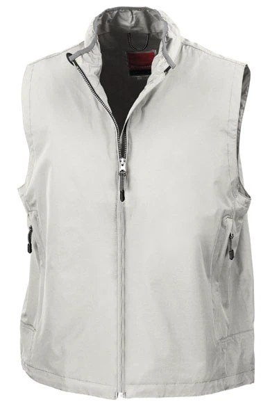 325 gsm • outer: 100 % nylon • inside: 100 % polyester • waterproof • windproof • light sports gilet • reflector to back of collar • decorative ring on back • 2-way zip with storm flap • various pockets • collar and bottom hem adjustable by drawcord with stoppers • concealed embroidery and print access through left chest and back.