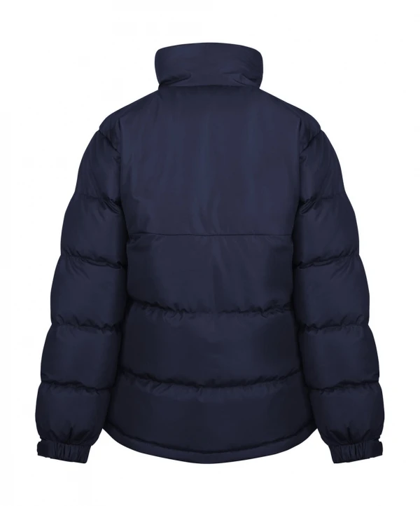 Outside and padding: 100% polyester • quilted (down-effect) • waterproof • stand-up collar with fleece lining • full zip • adjustable tear release sleeve ends • two side pockets and one inside pocket with zip closure • decoration access in the back and on the left chest • straight-cut hem with drawstring and stoppers • suitable for embroidery and print