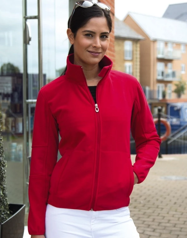 370 gsm • outer fabric: T750D/144F polyester/fleece soft shell combination (shoulder • front and back: microfleece • sides and inner arms: stuctured soft shell) • middle layer: breathable TPU membrane • inner fabric: polyester and elastane shoulder lining • wind- and water-resistant • full zip • side pockets with concealed zipper • fitted cut.