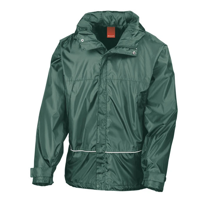 100 % polyester with mesh lining • water- and wind proof • hood can be folded away • full zip with wind protection border • cuffs adjustable with hook-and-loop fastener • concealed zipped pockets • reflecting piping in the lower trunk area • Suitable for transfer print.