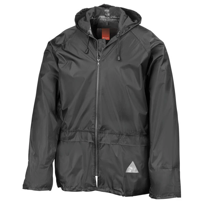 100 % polyester (190T) with PU-coating • fully waterproof (sealed seams) • jacket: polyester mesh lining • hood • adjustable cuffs • cord pull at hem. Elasticated trousers • trouserleg ends adjustable with press stud • comes packed in carrying bag with zip.