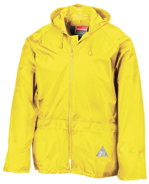 100 % polyester (190T) with PU-coating • fully waterproof (sealed seams) • jacket: polyester mesh lining • hood • adjustable cuffs • cord pull at hem. Elasticated trousers • trouserleg ends adjustable with press stud • comes packed in carrying bag with zip.