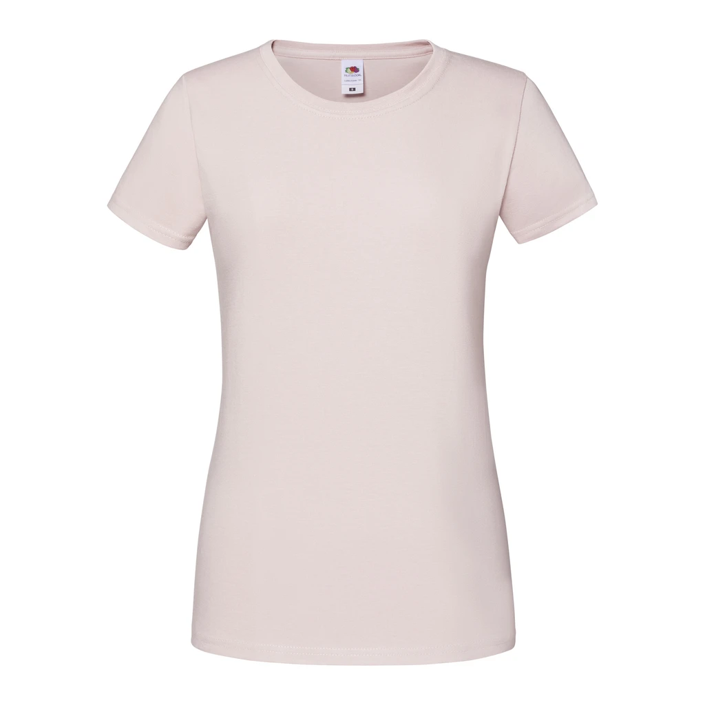 Material: 100% cotton; Heather Grey: 97% cotton, 3% polyester; Ash: 99% cotton, 1% polyester; Weight: 195gsm (white: 190gsm); 100% combed ringspun cotton, soft hand feel, shaped side seams for a feminine fit, performs at 60 degree wash, crew neck with cotton/ LYCRA® rib and twin needle stitching, self-fabric shoulder to shoulder taping; Certificates: STANDARD 100 by OEKO-TEX®; WRAP
