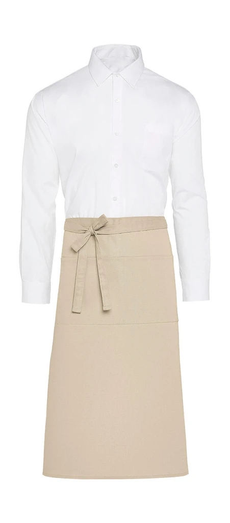 Looking for a sustainable bistro apron? Then, you can't miss this one. This bistro apron with pocket made of 65% RECYCLED pre-consumer polyester and 35% RECYCLED post-consumer cotton (GRS certified) so it's a truly conscious choice. It's available in 8 classic colours, washable at 60° and colourfast. Just add your logo or graphic to make it your own.