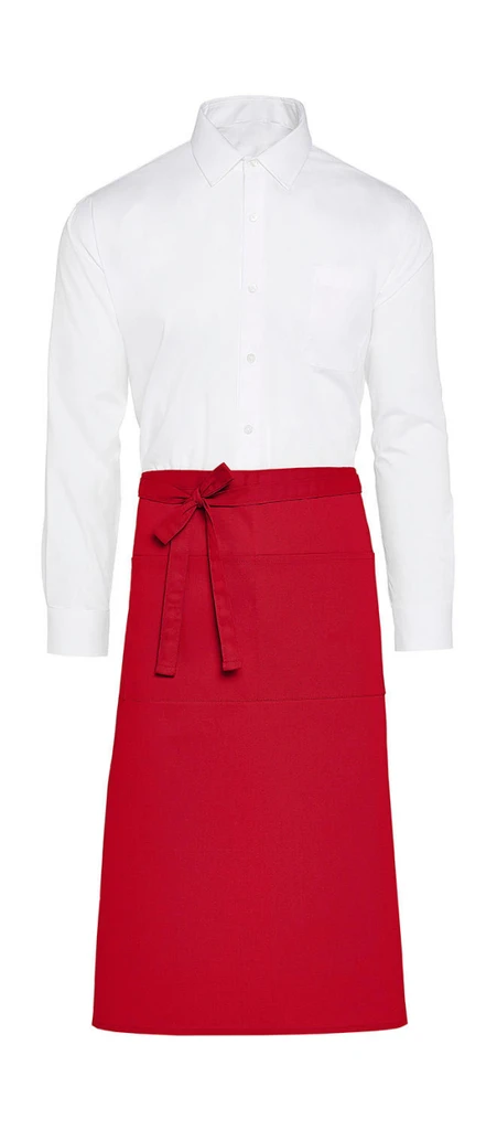 Looking for a sustainable bistro apron? Then, you can't miss this one. This bistro apron with pocket made of 65% RECYCLED pre-consumer polyester and 35% RECYCLED post-consumer cotton (GRS certified) so it's a truly conscious choice. It's available in 8 classic colours, washable at 60° and colourfast. Just add your logo or graphic to make it your own.